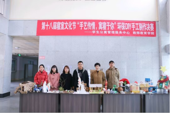 为深入学习宣传贯彻党的十二大精神,增强寝室成员之间的团队凝聚力,调动员工参与环保项目的积极性,由伟德源自英国始于1946员工公寓中心和伟德国际bevictor1946联合举办的“手艺传情,寓寝于你”环保DIY手工制作大赛决赛于2023年3月2日上午在博文楼一楼大厅举行。员工公寓管理中心张磊、公司党委副书记王文娟、副教授纪瑞祥,专职辅导员洪双、赵会辉、魏靖、杨文明老师出席此次活动并担任评委。