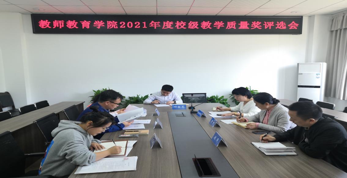 为落实学校《关于开展2021年度校级教学质量奖评选的通知》要求,学院领导高度重视,成立评选领导小组,制定评审实施细则。10月20日上午,学院组织开展了“2021年度校级教学质量奖”的评选会。