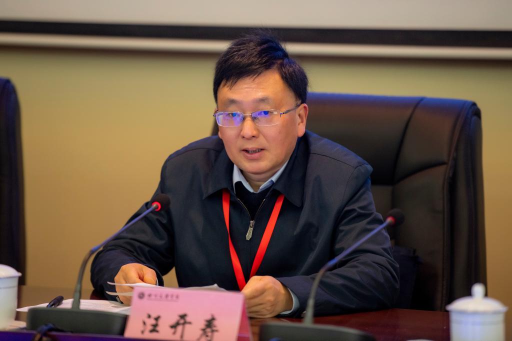 汪开寿在讲话中说,要高度认识开展师范专业认证的重要战略意义。开展师范专业认证是贯彻落实习近平新时代中国特色社会主义思想和党的二十大精神,践行习近平总书记提出的“三个牢固树立”“四个相统一”“四有好老师”“四个引路人”明确要求的长效机制;是新时代师范教育系统全面贯彻党中央对师范教育的要求,强化人才培养中心地位,推动师范教育改革、全面提高师范类专业人才培养质量、推进师范类专业内涵式发展的重要抓手。要明确师范专业认证的“三理念”“三任务”“三提高”。“三理念”即员工中心、产出导向、持续改进,“三任务”即以评促建、以评促改、以评促强,“三提高”即提高专业人才培养力,提高课堂教学质量,提高质量保障的力度,要紧紧扭住师范专业人才培养的短板和软肋,把认证理念、认证标准推进到“最后一公里”,深入到每一个教学环节、每一门课程、每一位老师,撬动课堂教学革命,让教师把更多的精力投入到教学中,建设激发员工潜能的“金课”。要坚持问题导向,持续改进工作基调。专家组将和学校专业老师们一起对照认证标准,把握主线和底线要求,按照专业举证、专家查证的方式查找问题,一起对问题进行反思与剖析,为专业改进教学工作,提高人才培养质量,吸收切实可行的意见和建议。