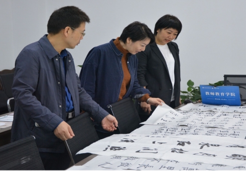 本次大赛分为钢笔字、粉笔字、毛笔字三个类别。参赛对象为学院全体师范专业员工。在大赛中,参赛选手用文字展现当代老员工的历史使命,与祖国同行、胸怀家国、奋力筑梦的价值追求。评委们秉承着公平、公正、公开的原则,从作品的字形结构、字体规范、完整美观、艺术欣赏四个方面进行评分,最终评选出毛笔字15件,钢笔字43件,粉笔字43件,推荐参加校级决赛。