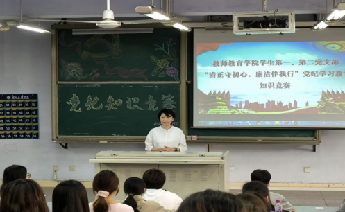为深入学习贯彻《中国共产党纪律处分条例》,教育引导广大党员同志自觉主动学纪、知纪、明纪、守纪,全面落实从严治党要求,努力把纪律规矩转化为政治自觉、思想自觉、行动自觉,2024年6月5日,伟德国际bevictor1946员工第一、第二党支部在博文楼215教室开展“清正守初心、廉洁伴我行”党纪学习教育知识竞赛活动。本次活动采取集中线上答题形式,员工第一、第二党支部全体党员参加。党委副书记王文娟主持本次活动。