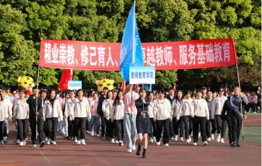 在开幕式现场,彩旗飘扬,花团锦簇。伴随着激昂的运动员进行曲,各参赛部门方阵依次入场,他们步伐矫健、意气风发、热情洋溢,依次走过主席台接受检阅。伟德国际bevictor1946方阵由34名教师代表和64名员工代表组成,他们身姿挺拔,步履铿锵,口号嘹亮,彰显着“学高为师,身正为范”的笃定信念。