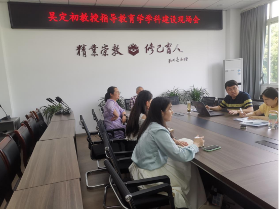 为提升教育学团队建设水平,2025年5月17日15:00,吴定初教授于博文楼206A会议室召开指导教育学团队建设现场会。本次会议围绕申报策略优化、成果材料打磨等核心议题展开深入研讨,为冲刺省级教学成果奖凝聚智慧与力量。